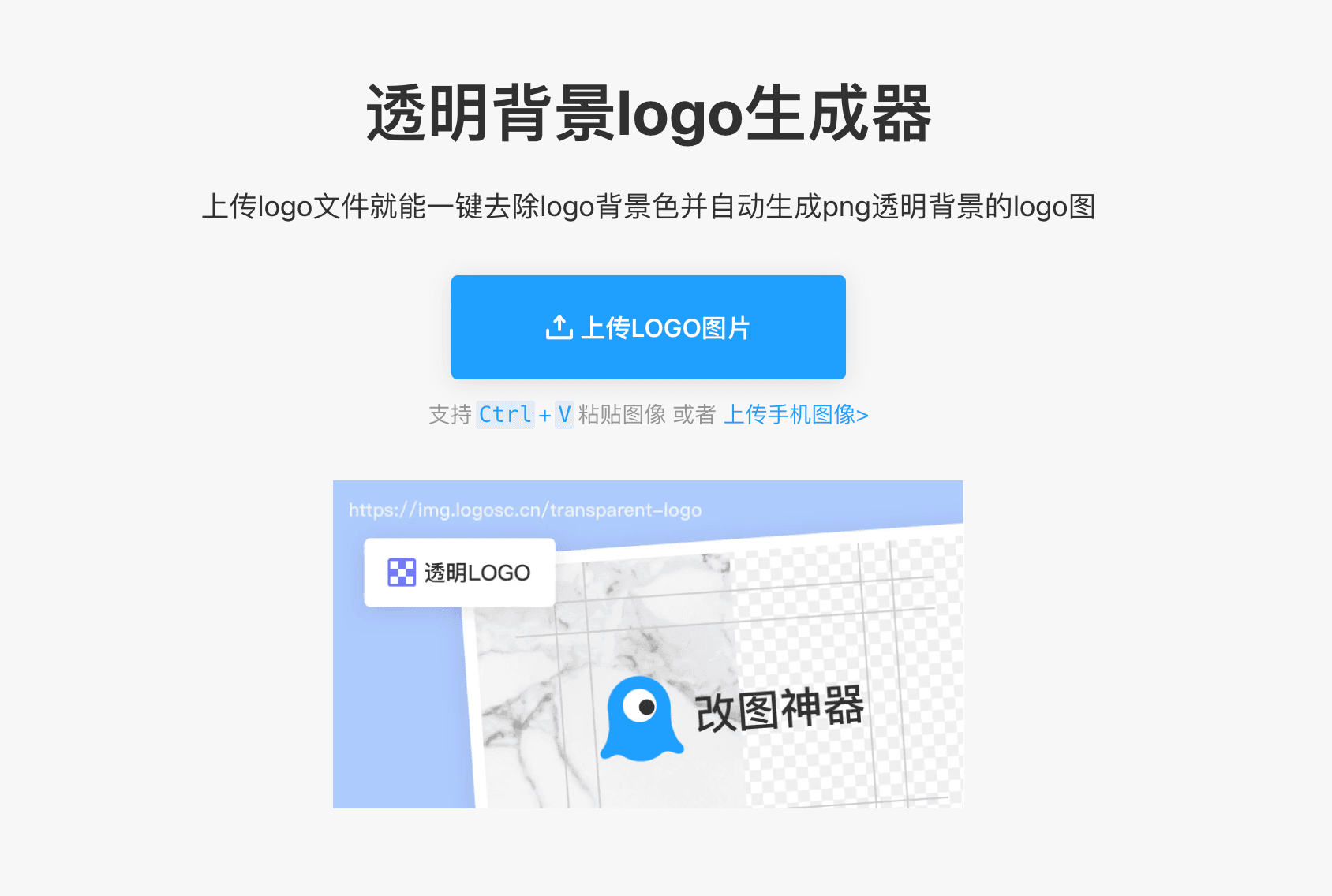 现在网上专门做logo设计的在线工具还是蛮多的,在这里为大家推荐比较好用的改图神器,这款工具是完全免费在线使用的,大家访问官网就可以使用工具在线一键生成自己需要的透明logo标志了,操作起来简单方便而且还不需要另外下载专门的软件APP,建议大家有需要的可以去尝试使用一下哦。