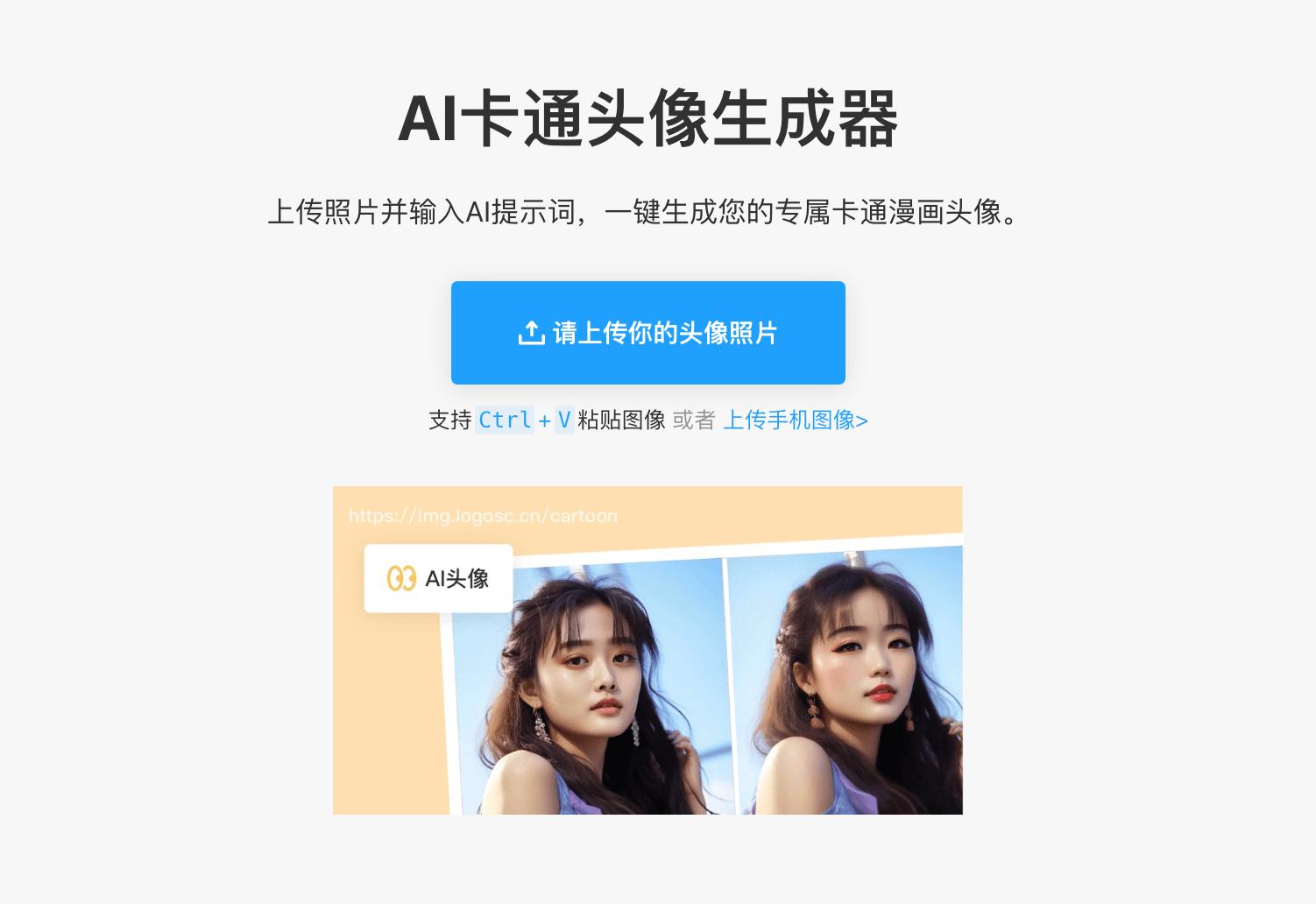 生成卡通头像的操作非常简单,只需要点击进入AI改图神器的AI头像功能界面,拖拽你想要生成卡通头像的照片到网页上或者点击上传,也支持使用 Ctrl+V 将照片复制进来,或者可以从手机端直接扫码上传图片到电脑端进行处理,最高支持20M大小的照片。